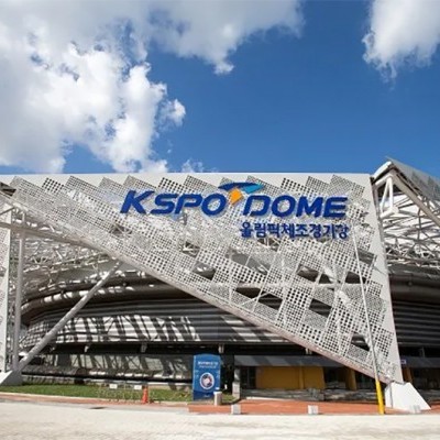 • SKハンドボール競技場を通り過ぎた右側にある、シルバーの円形ドーム型建物が KSPO DOME です。