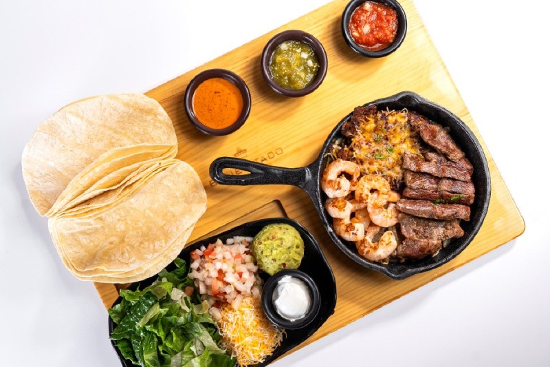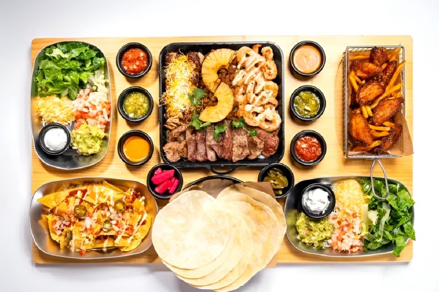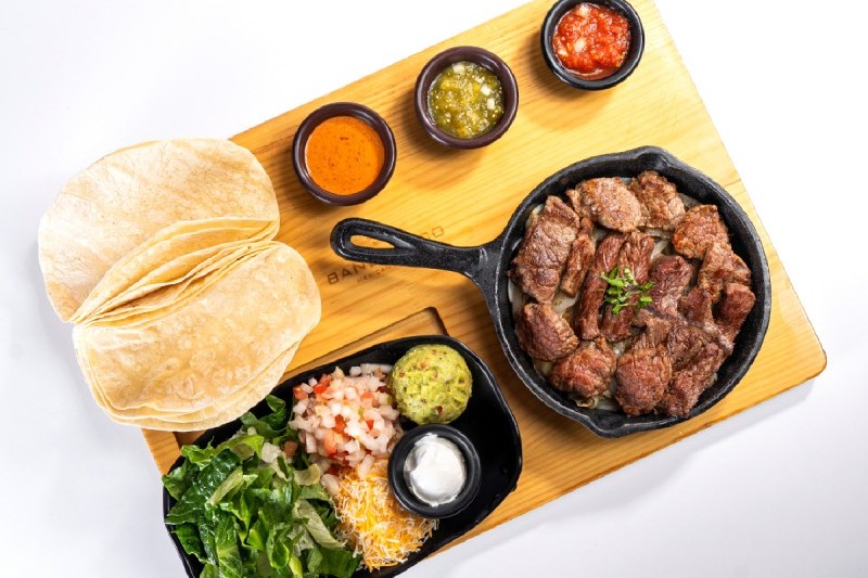 1. 圧巻のパフォーマンス:鉄板ファヒータ・プラッター 疑いようのないメニューの主役であり、最も「インスタ映え」する一皿です。ファヒータ・プラッターは、ドラマチックな「ジュージュー」という音と共にテーブルに運ばれてきます。熱々の鉄板には、グリルされた海老、香ばしいステーキ、柔らかいポークが山盛りにされ、キャラメリゼされた玉ねぎとパプリカの上に鎮座しています。